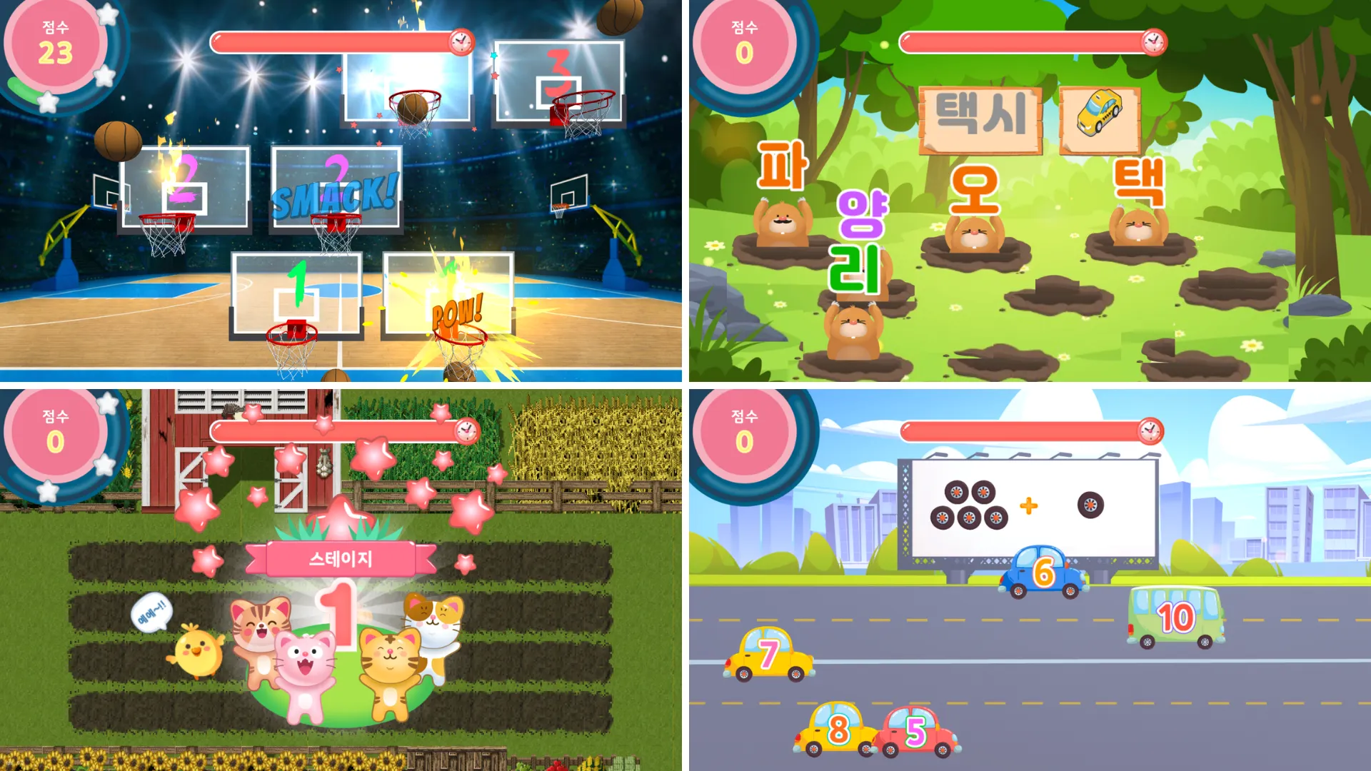 지속적인 콘텐츠 업데이트를 위해 50개 이상의 다양한 교육용 미니게임을 개발했습니다. 각 게임은 아이들의 신체 활동을 장려하고 직관적인 조작을 통해 자연스러운 학습을 유도하도록 설계되었습니다. 이를 통해 장기적인 사용자 참여와 학습 효과를 극대화했습니다.