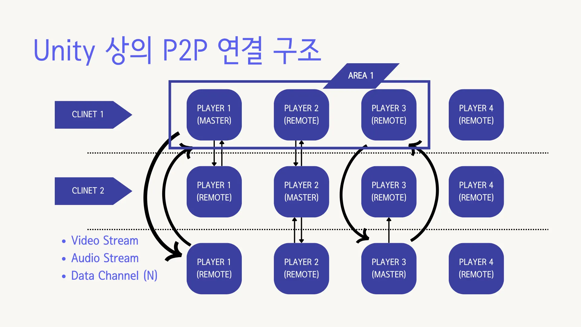 WebRTC 시스템 아키텍처 설계 및 Unity 환경 내 구현 주도 (기여도 100%)